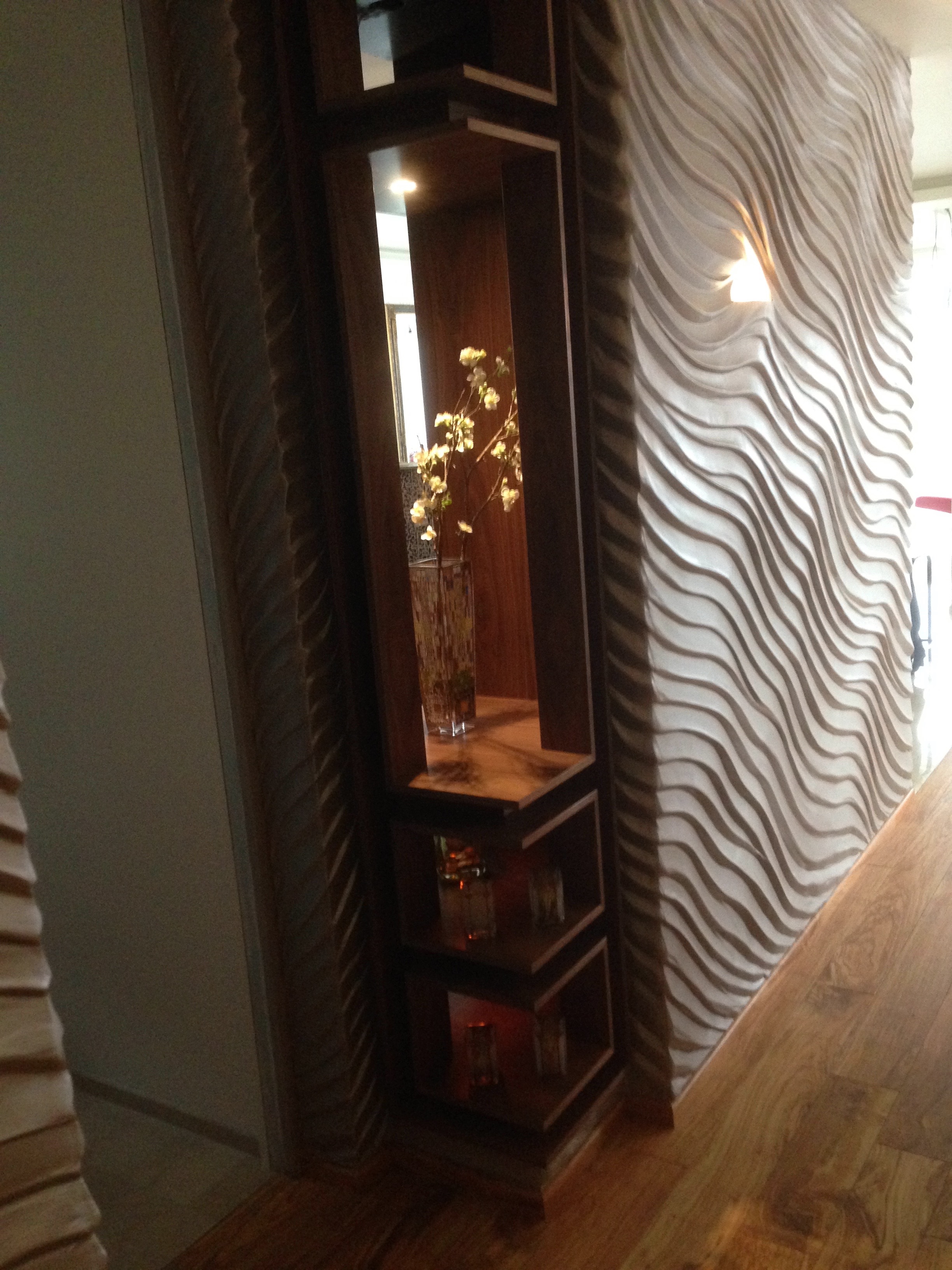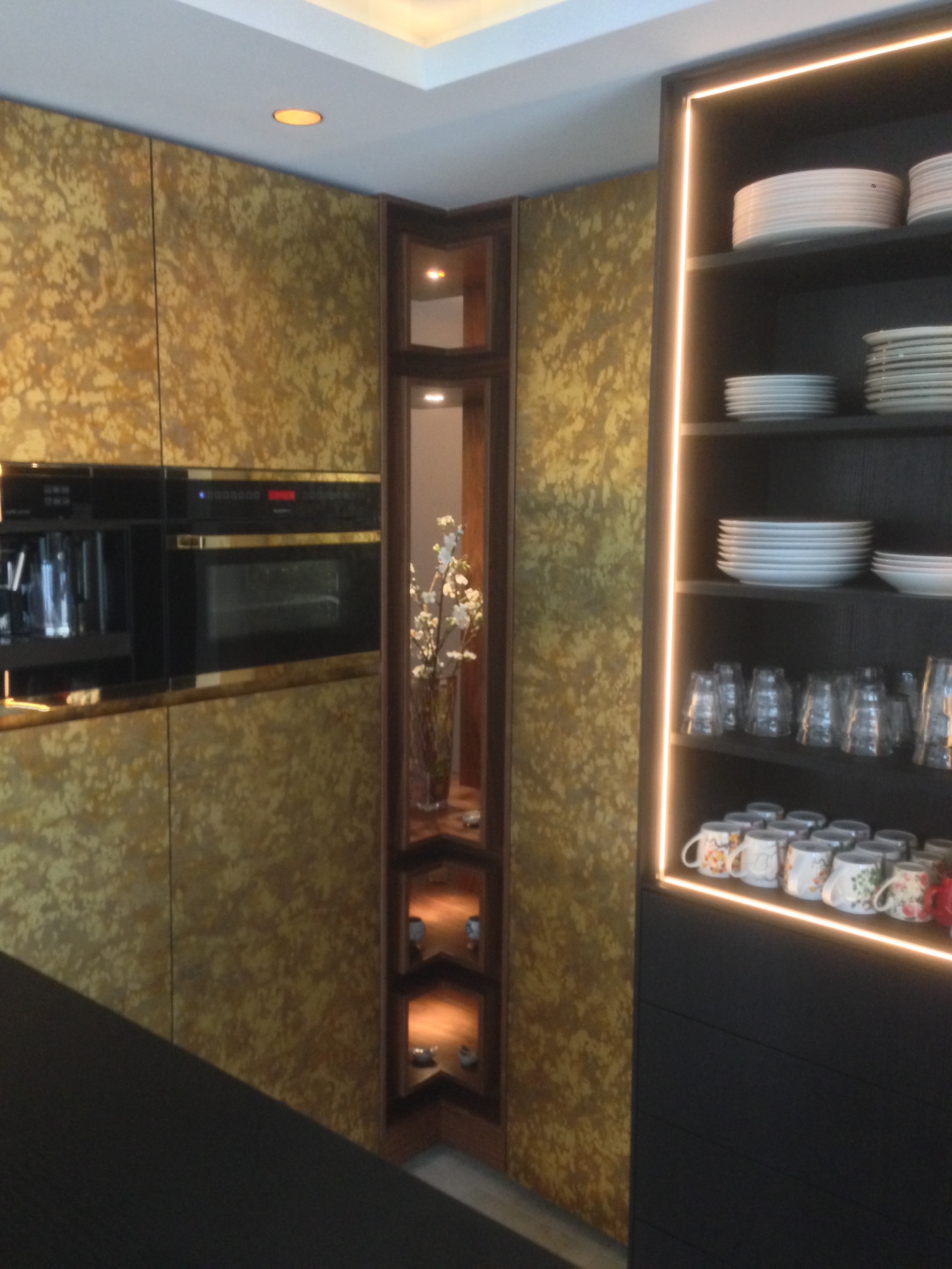 Voor deze woning hebben wij de complete inrichting mogen verzorgen. Typerend zijn de bijzondere kastenwanden. Zo is er in de keuken een doorkijk gecreëerd naar de hal. Daarnaast hebben alle kasten geïntegreerde ledverlichting.